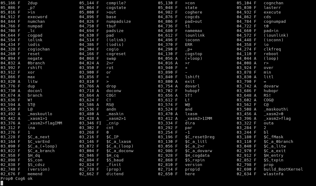 CON:Prop0 Cog6 RESET - last status: 0 ok