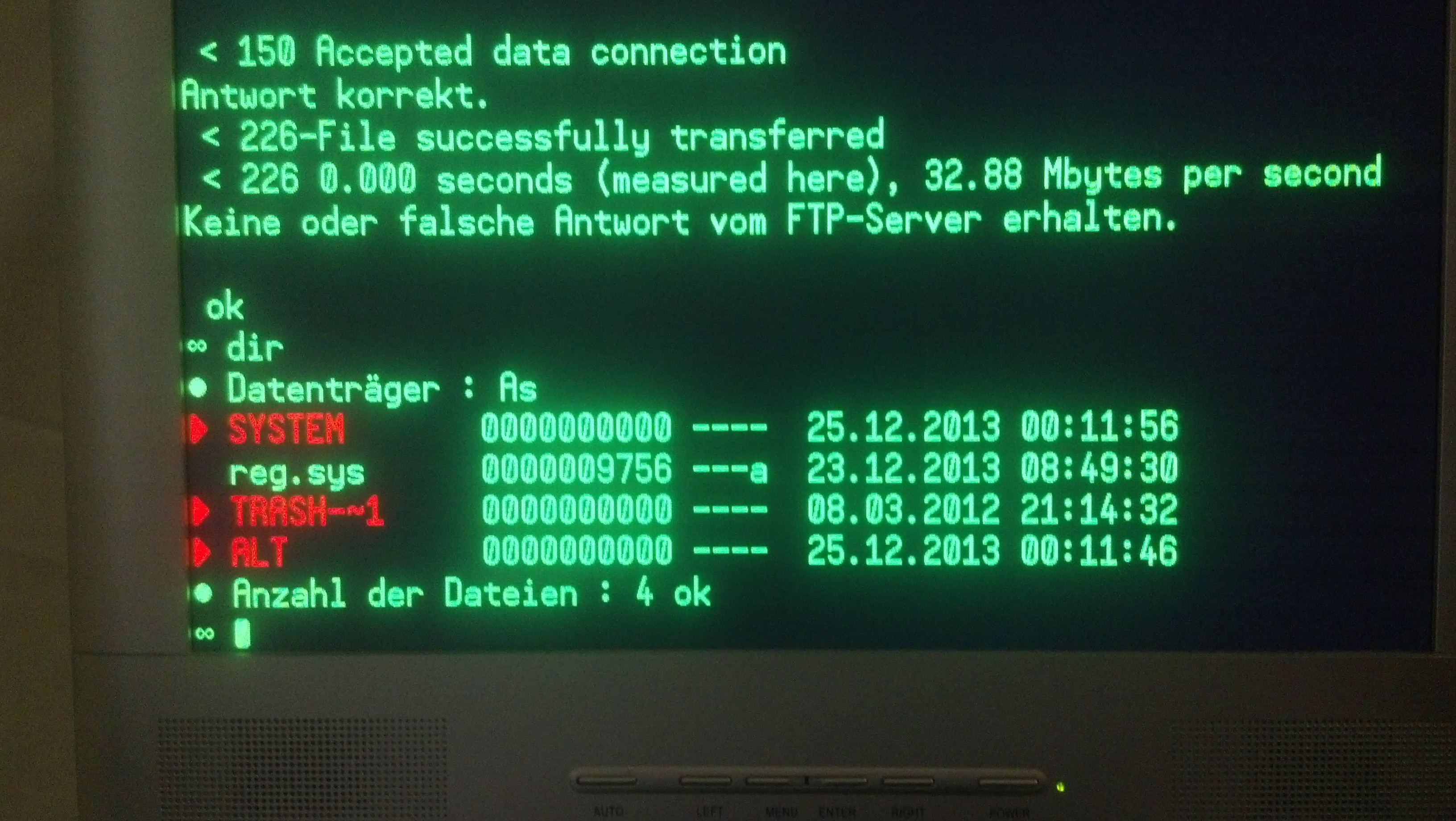 "Keine oder falsche Antwort vom FTP-Server erhalten" am Ende der Übertragung macht nichts (die Ursache muß ich aber noch ergründen). An der Ausgabe "226..." des FTP-Servers erkennt man die erfolgreiche Übertragung.
