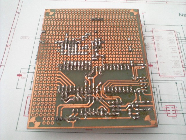 ...bei Punktraster müsste man jeden Pin auf die Buchsen verdrahten... diese Adern könnte man aber enger legen als bei Streifenplatinen üblich und würde so etwas mehr Fläche übrig behalten...