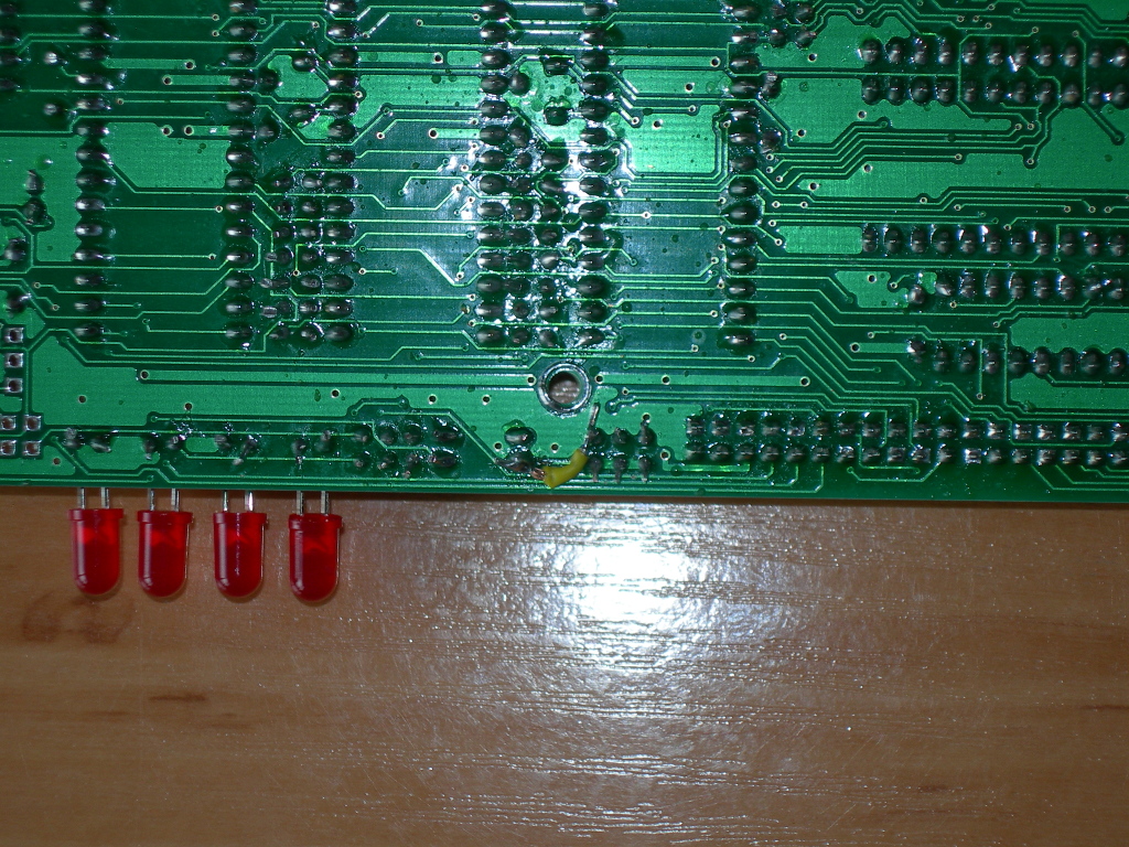 Trotz meines Mangels an Übung mit dem Lötkolben ging alles zwar ohne große Probleme aber langsam. Nur als ich den Speicher testen wollte, bekam ich mit, dass ich beim Löten der Bus-Dioden eine Lötbahn gerissen habe. Eine Brücke auf die Rückseite der Leiterplatte und Fertig (Bild 08). Ich bin nicht stolz darauf aber sehr froh, dass ich es gefunden habe!