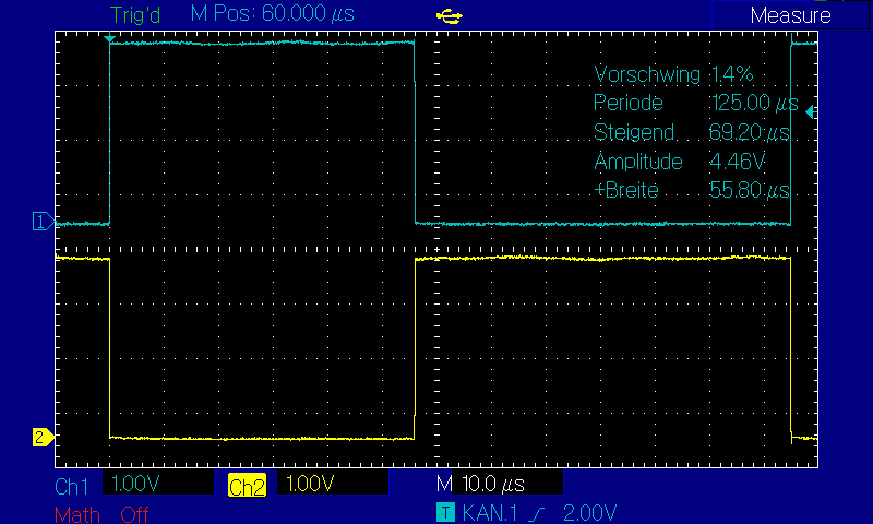 Beide Kanäle benutzen zwei Ausgäne einmal normal einmal Invertiert.