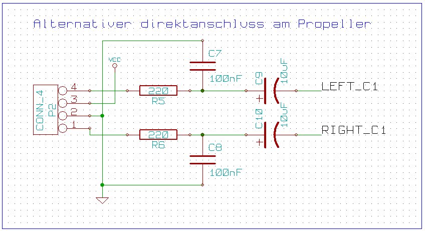 Da der Propellerchip aber mit seinen effektiv 3.2 V Amplitude PWM-Signal ein ausreichend großes Signal für aktive Boxen liefert - dieses Signal reicht selbst für einen direkt angeschlossenen Kopfhörer in moderater Lautstärke - wird der TDA-Chip in keiner weise benötigt und wird wohl auf der nächsten Platine nicht mehr zu finden sein. Dafür wird es einen Pinheader geben, an welchem man bequem die Analogsignale abgreifen kann um eventuell eine eigene Verstärkerschaltung zu realisieren.