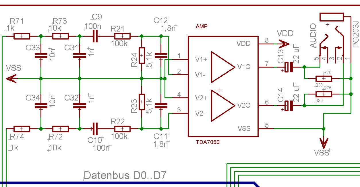 Hallo,Rainer hat geschrieben:Was für eine veränderte Audioschaltung MIT TDA ? Das wird nicht funktionieren .. Du übersteuerst den TDA Gnadenlos, oder verstehe ich Dich da irgendwo falsch ?
