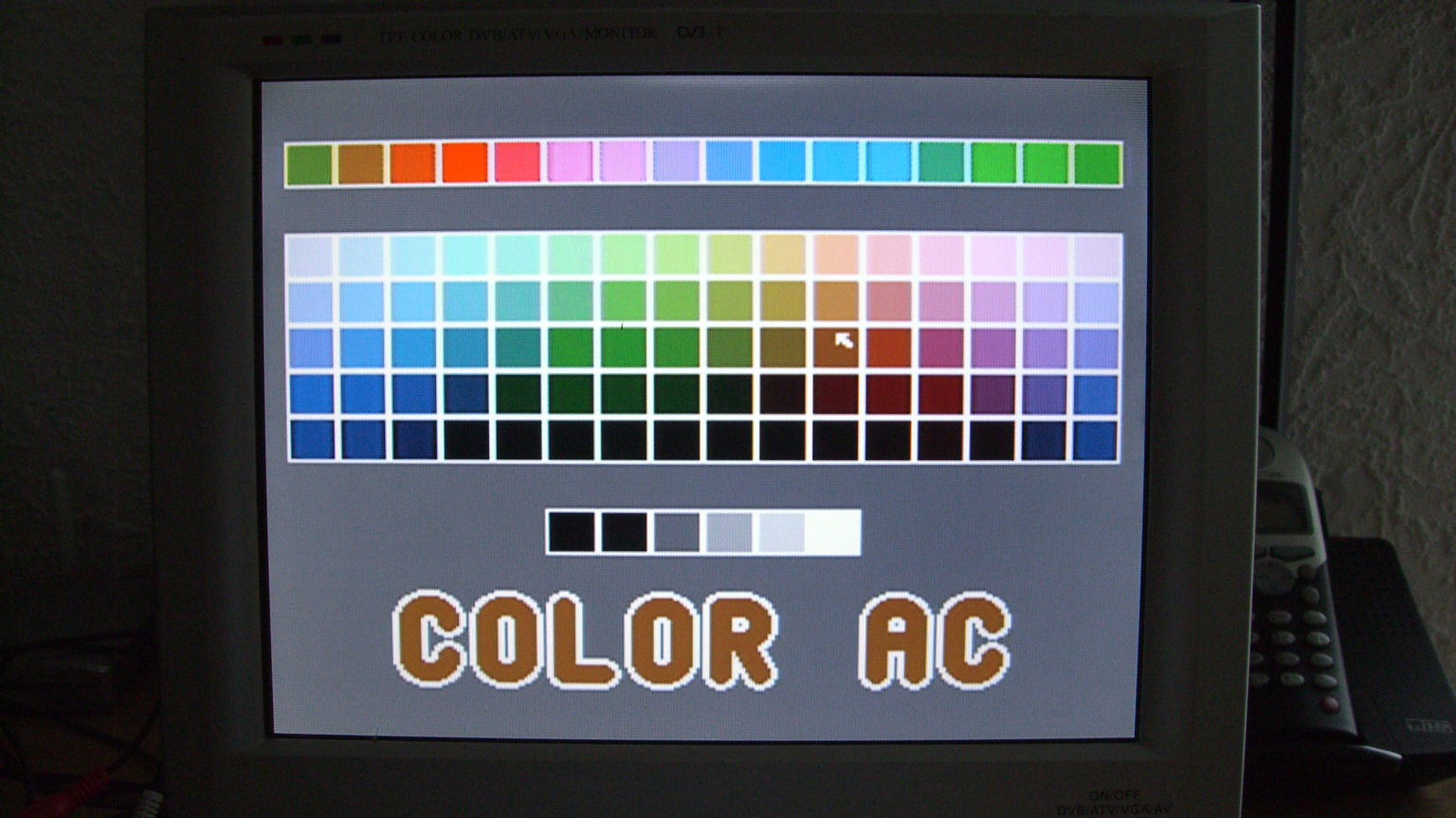 VGA-Test: Auf den ersten Blick erscheint die LCD-Auflösung etwas schwach für ein VGA-Signal, trotzdem wird ein recht brauchbares Bild angezeigt. Vermutlich werden bei der Darstellung einige Zeilen und Spalten weggelassen, um auf die LCD-Auflösung zu kommen. Da aber die Zeichen bzw. Tiles beim Propeller mit 16x32 Pixeln recht großzügig dimensioniert sind, stört eine Reduzierung nicht - solange man im Textmodus arbeitet. Leider funktionieren BELDEM3, BELDEM4 und auch der HTEXT-Treiber nicht mit diesem Monitor. Entweder wird gar nichts angezeigt oder es erscheint ein flimmerndes Bild. Das Invaders-Demo wiederum wird sehr gut dargestellt. Vermutlich hat der Monitor Probleme mit Bildfrequenzen über 60Hz.