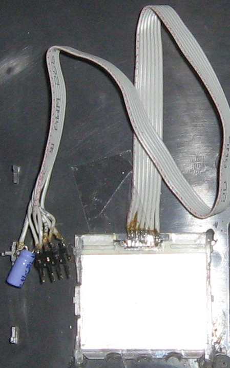 Das ist das im Gehäusedeckel eingeklebte Display (von hinten) und der Steckverbinder.