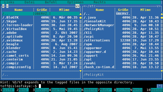 Ziel ist Auf einem PC die Daten so wie mit dem Nortoncommander/Midnight Commander zu verwalten.