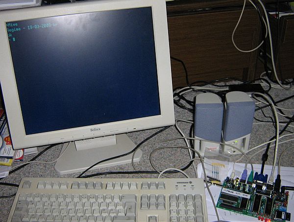 Sonntag früh, mein HIVE dudelt jetzt und starte mit seinem Betriebssystem. Ursache für das SD-Karten-Problem war einfach, dass Windows die 16MB-Karte mit FAT12 formatiert hat und nicht mit FAT16. Ich habe einfach eine größere Karte genommen und nun geht alles. Freu!!
