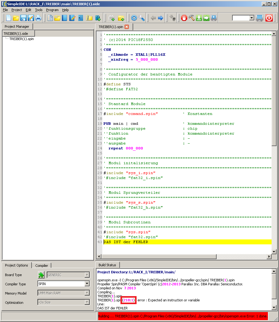 PIC18F2550 hat geschrieben:Gibt es eigendlich irgend eine Möglichkeit zu sehen was SimpleIDE mit den include Anweisungen zusammen Würfelt???