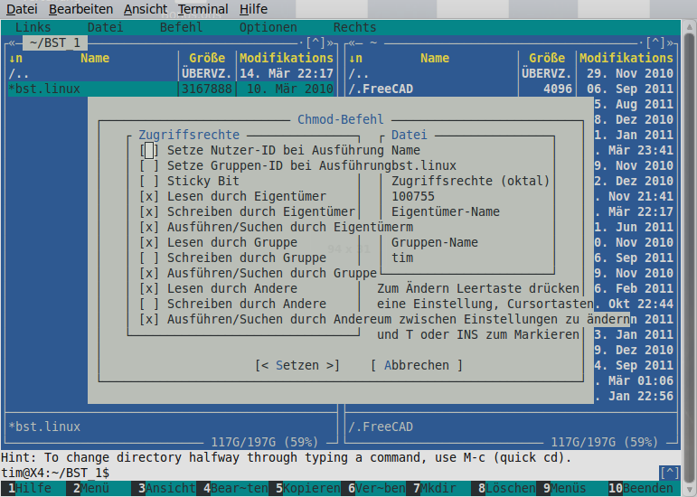 3 Ändere die Rechte von bst.linux