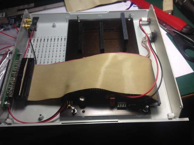 Manchmal kommt man auf das naheliegendste als letztes. Der Hive-Bus wird mit einem IDE-Kabel (allerdings mit Wannensteckern) untereinander verbunden ähnlich, wie man es mit Festplatten gemacht hat. Einfach die Wannenstecker im richtigen Abstand auf das Flachbandkabel pressen, damit braucht jedes Erweiterungsgehäuse nur eine BUS-Buchse (wie das Basis-Gerät) und das Flachbandkabel hat soviel Stecker, wie nötig.