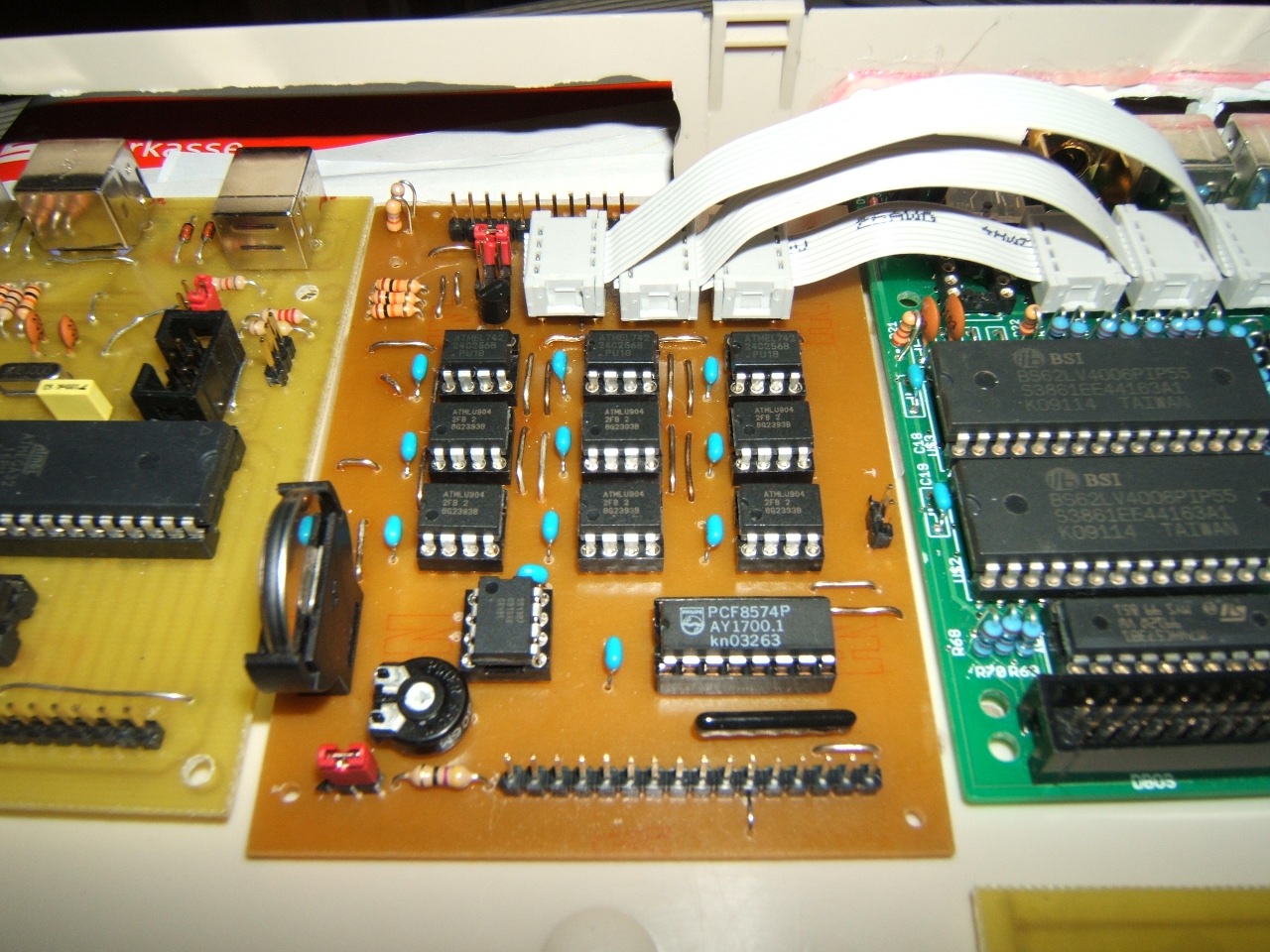 So, erstmal geschaft. Die neue EEPROM- Platine ist nun auch fast fertig bestückt und booten kann unser kleiner Hive schonmal von ihr. Es fehlt nur noch der Wannenstecker für den Cartrisge-Port. Nun sind erstmal alle Platinen, die mit in unseren kleinen C64-Hive kommen sollen so gut wie fertig. Nun muss nur noch die Software für die ansteuerung der Addons fertig gestellt werden. Auch das Gehäuse ist noch nicht komplett fertig. Aber das wird sicher noch.