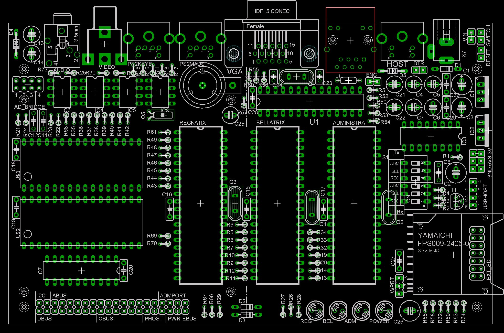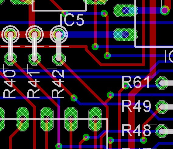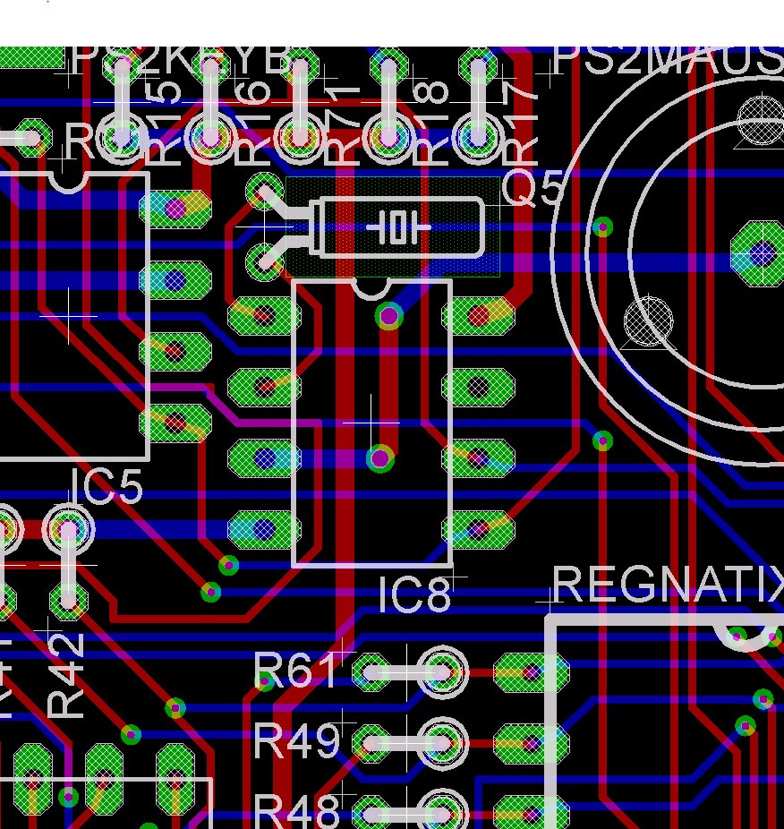 Könnt Ihr bitte die Eagle-Files auch hochladen? Beim kurzen Drüberblicken fielen mir ein paar ungünstig platzierte Vias auf, die beim Löten leicht zu unbemerkten Kurzschlüssen führen können, z.B. bei IC8 Pin6 - Pin7, oder Regnatix Pin5 - Pin6.