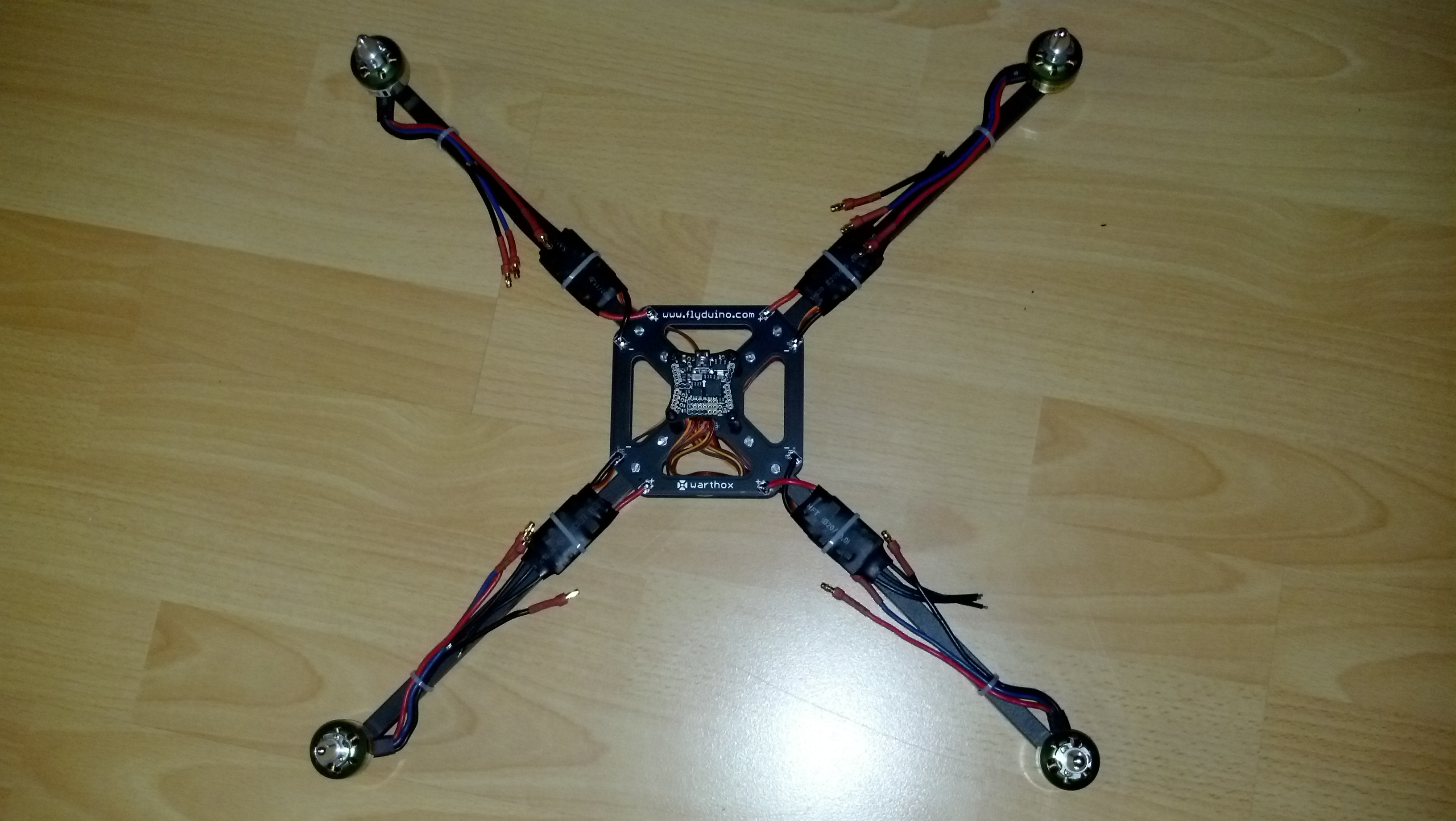 Eine stabilisierung währe mit Achsen zur Modellmitte geneigt möglich wenn sich der Schwerpunkt des Modells ca. 0.5 fachen der Auslegerlänge unterhalb des models befände.