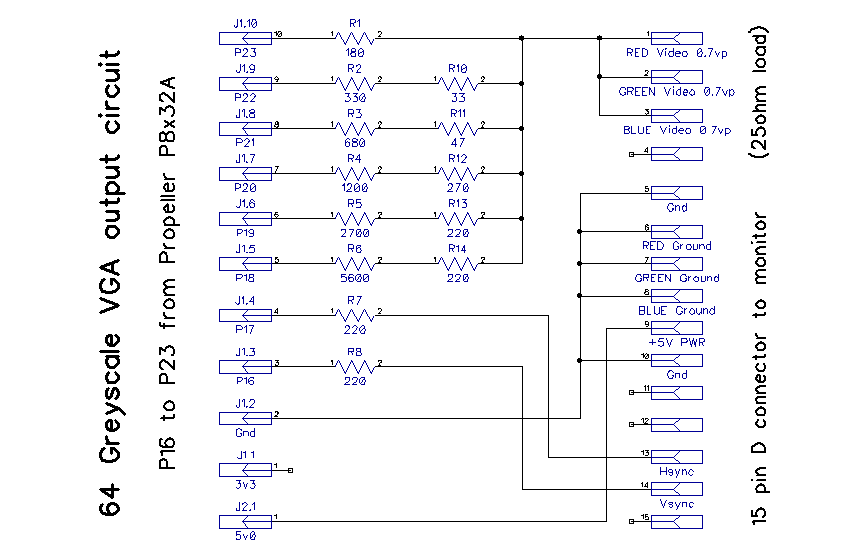 Habs gefunden 64 Graustufen sind schon genug.Warum am pin 9 des VGA-Steckers +5V sollen verstehe ich jetzt nicht.