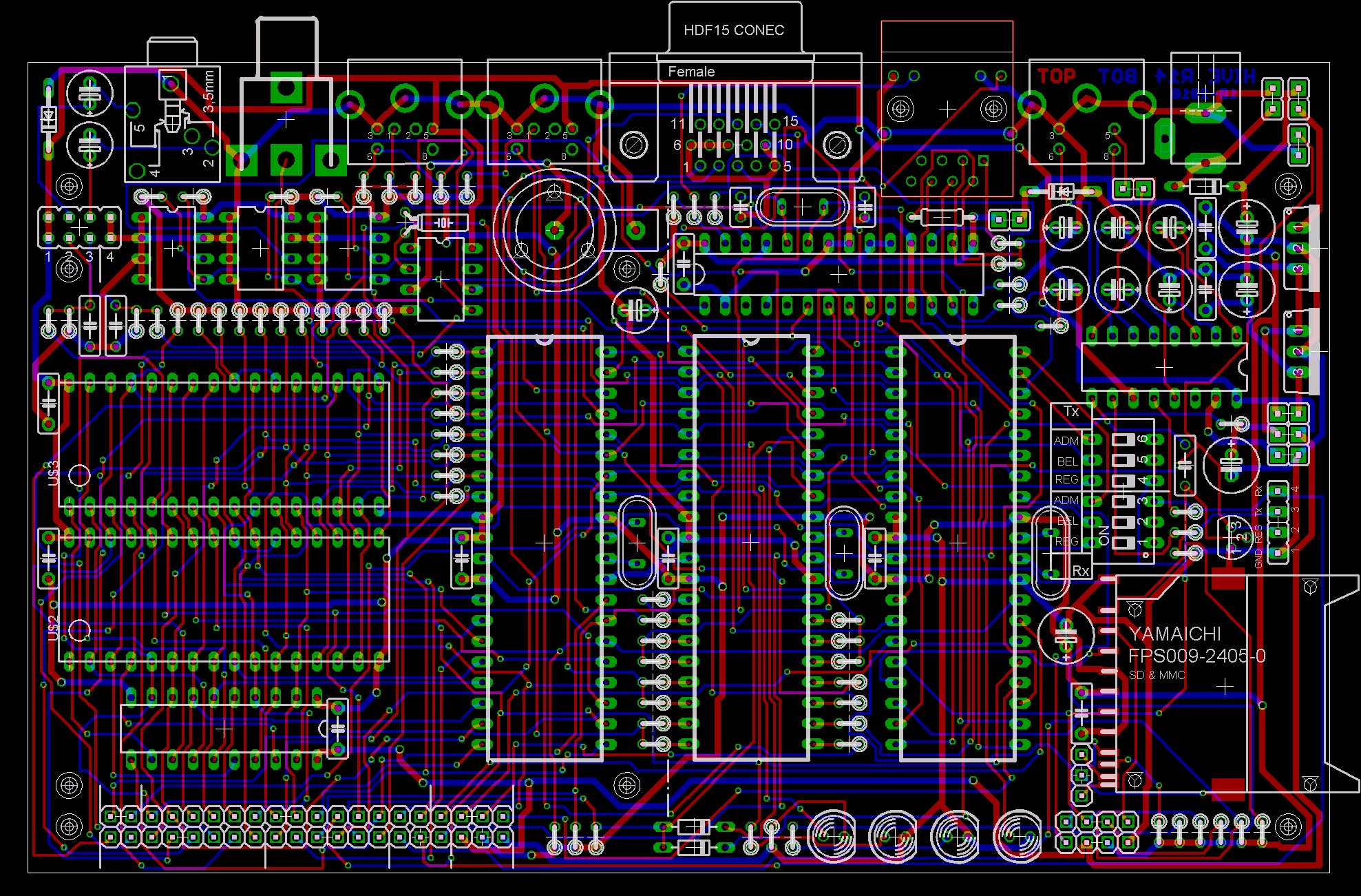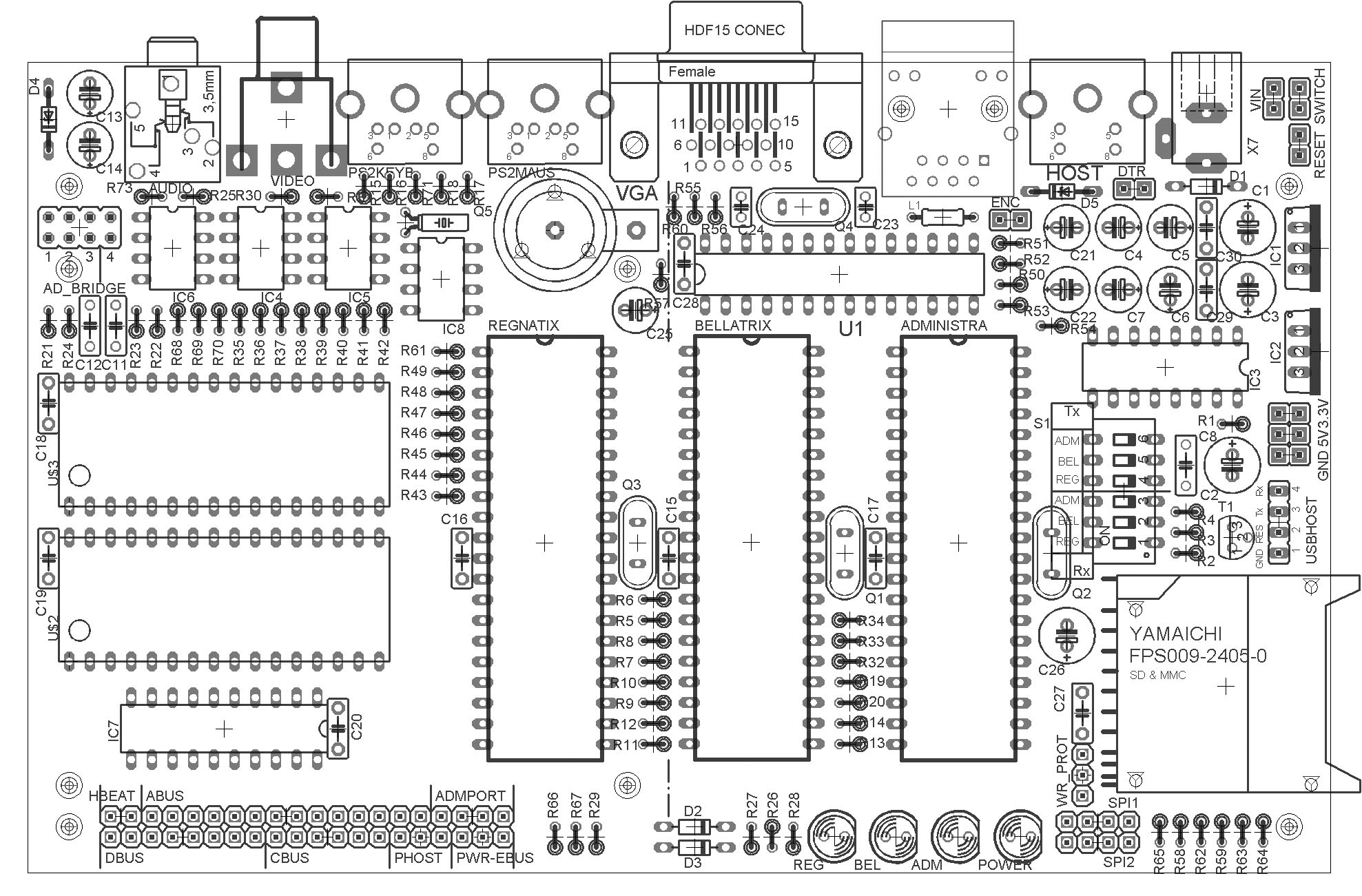 • Der SPI-Bus des SD-Laufwerkes ist nun auch mit bestücktem SD-Connector nutzbar. Damit sollten - eine passende Änderung der Software vorrausgesetzt - mehrere Laufwerke und andere SPI-Devices anschließbar sein. Das Signal ADM-HBEAT und zusätzlich 5V liegt jetzt mit auf dem SPI-Pinheader. Damit ist eine einfache Adressierung sichergestellt.