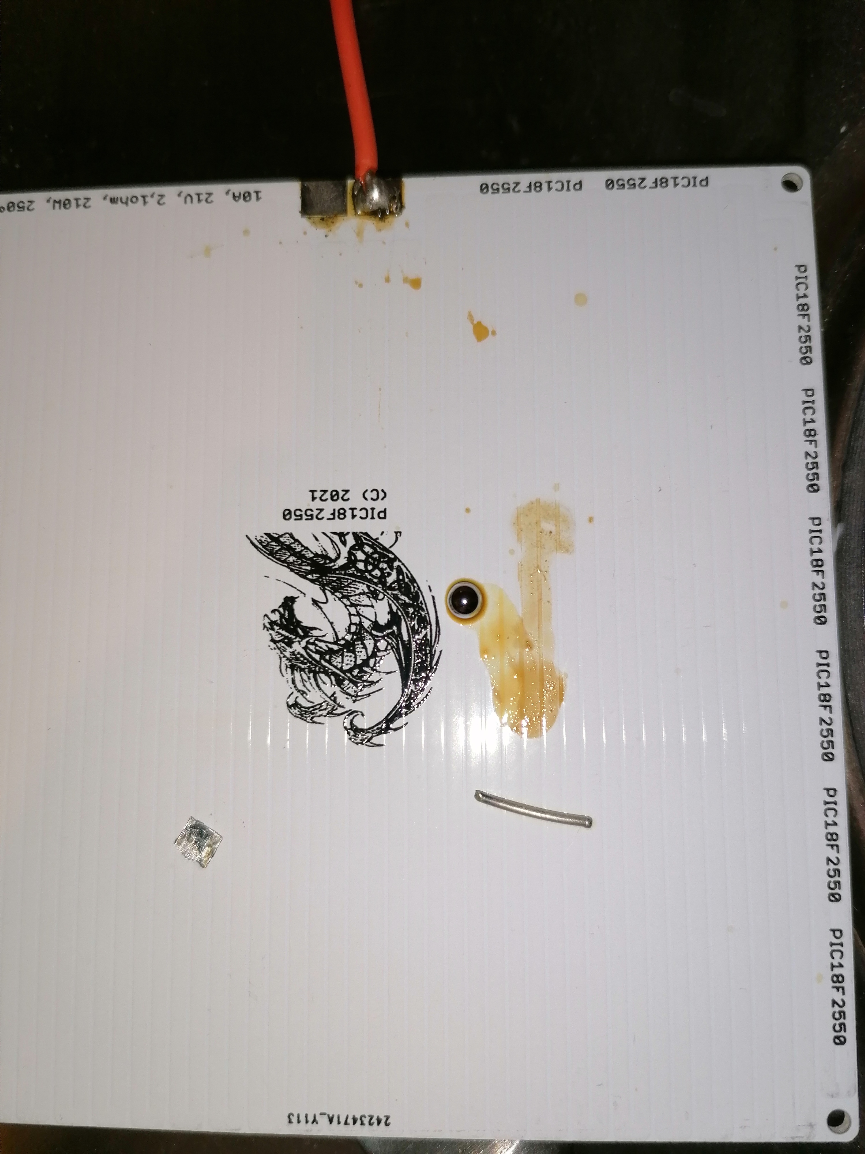 Nach einer Stunde bei der Hitze keine Schäden an der Leiterbahn oder Isolation, nur der Lack ist etwas nachgedunkelt. :DAUMENHOCH