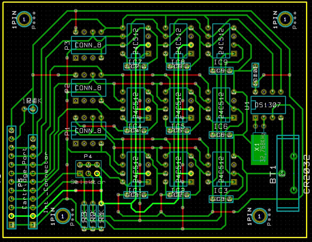 Hihi, so nun bin ich erstmal zufrieden. Im prinzip müsste nun eine potentielle Cartridge die Controlle über die 3 Adressleitung an den 3 EEPROM-Bänken über eine einfache Brücke übernehmen können. Muss das ganze mal vor dem Ätzen noch auf meinem Steckbrett testen. Habe das ganze im Simulator erfolgreich zum laufen gebracht, nu muss es nur noch in der Realität auch tun.
