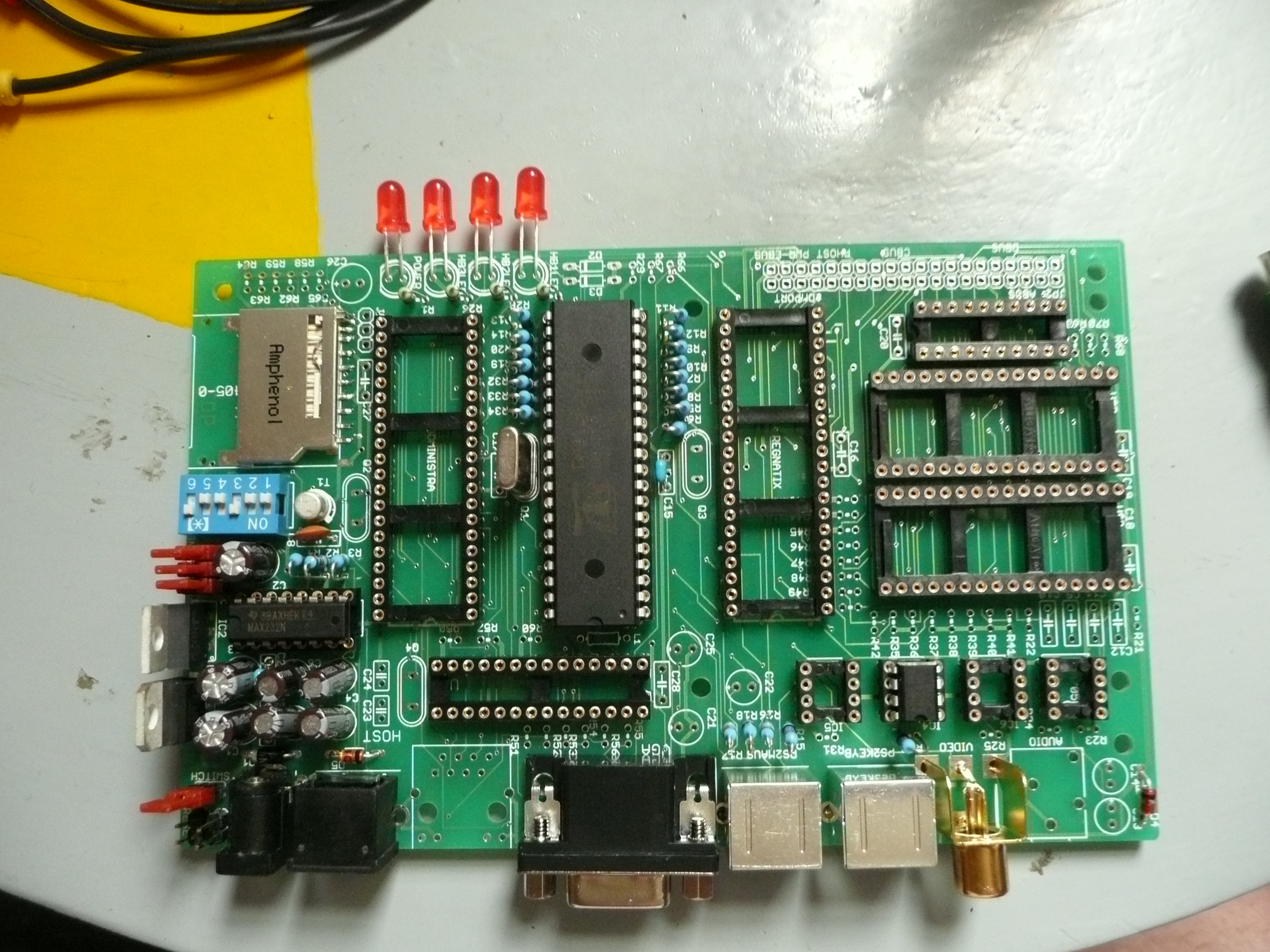 So mein Kumpel hat nun auch Ferien. Da er noch nicht so viel Löterfahrung hat wie ich und genauso erfahren im programmieren von Mikrocontrollern ist wie ich (nämlich gar nicht) basteln wir unsere zusammen zusammen. Mach eh mehr Spaß als alleine. Heute habe wir uns einen groben Überblick verschafft und schon mal alle Sockel und den SD Slot aufgelötet. Nächste Woche geht dann weiter und hoffentlich mit weng mehr Zeit (er musste noch seine Geburtstagsfeier für morgen vorbereiten). Vorwiderstände, Quarze und USB<->RS232 Converter hab ich schon besorgt. Letzteres gibts übrigens bei Dealexteme für ~4$ (keine Versandkosten)