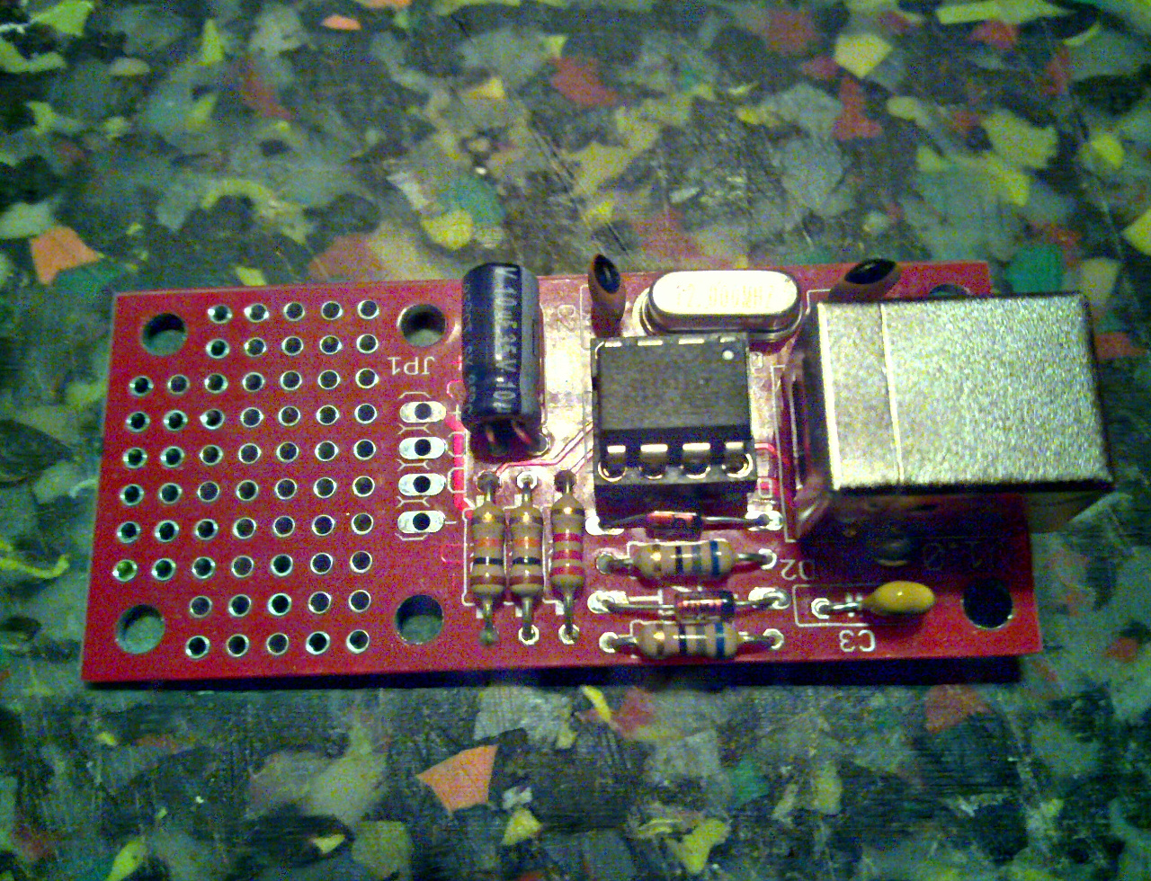 Einziger Fortschritt seit dem vorherigen Datum ist derzeit, daß ich endlich die Elkos auf den beiden I2C-Tiny-Aufbauten mit einem Tröpfchen Sekundenkleber fixiert habe. Wahrlich keine weltbewegende Nachricht.