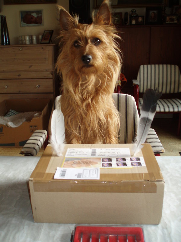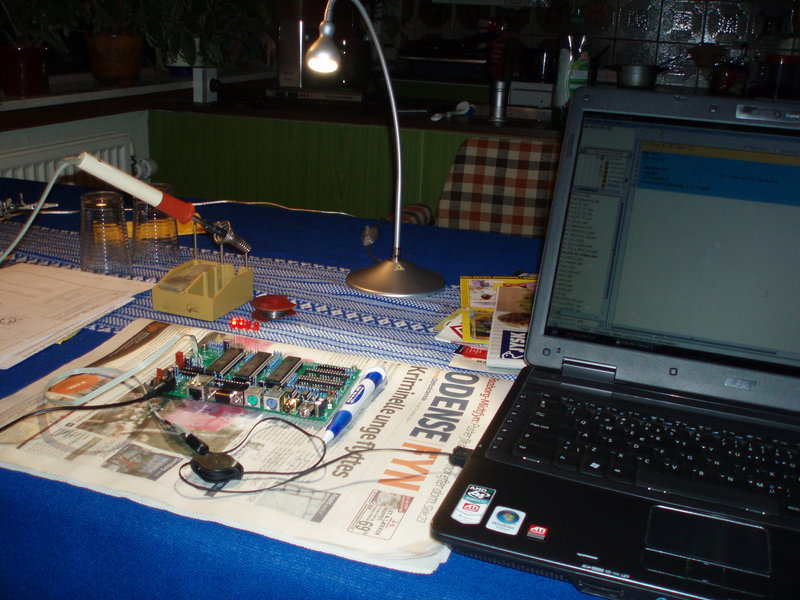 Die kleine Hündin schaut noch nicht so richtig begeistert, dabei müsste sie das kennen denk ich - der Lötkolben sieht so aus als ob das nicht die erste Bastelei ist.