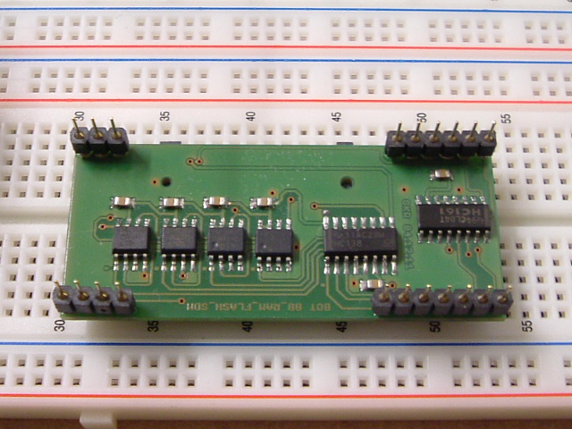 Modul von unten mit 2 x 32kB RAM, 2 x 2MB Flash Mem., Encoder und Zähler.