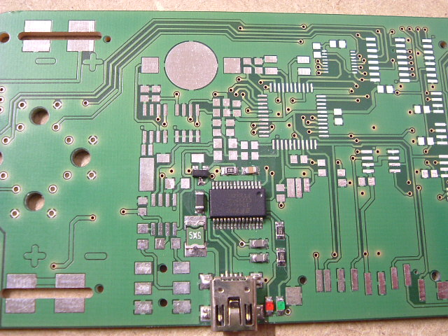 7. Optische Kontrolle der Lötungen ob kein Kurzschluß vorhanden ist, am besten mit einer Juwelier-Lupe. Danach eine Kontrolle der Anschlüsse der USB-Buchse mit einem Multimeter (Einstellung Widerstandsmessung) ob keine Kurzschlüsse vorhanden sind.