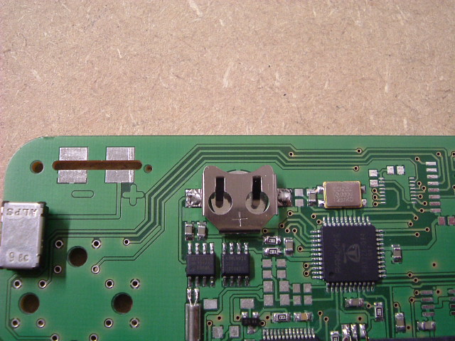 5. Kürzen der Anschlußdrähte (max. 1,5mm lang) von den drei Tasten (S702, S703 und S704), die sich unterhalb der Batterien befinden werden. Die durchgesteckten Enden würden die Auflage der Batterien auf der Platine stören.