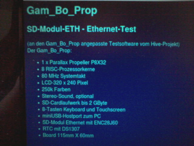 Als Testsoftware habe ich die selbe Software wie beim Hive benutzt. Es mußten nur geringe Änderungen im Assemblerteil und im Spin-Teil für den SPI-Bus des GBP vorgenommen werden.