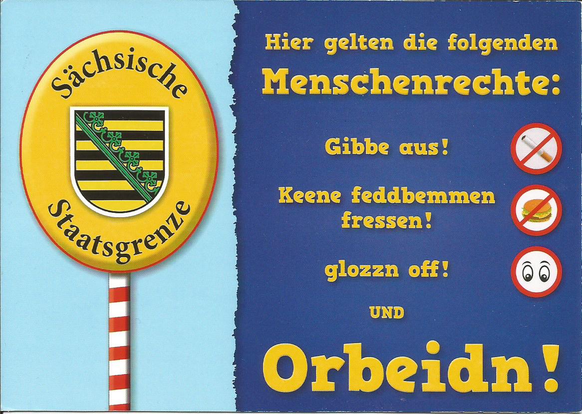 Ich hab’s doch extra aufgeschrieben: Gibbe raus! Keene Feddbemmen fressn! Glozzn off! ORBEIDN!