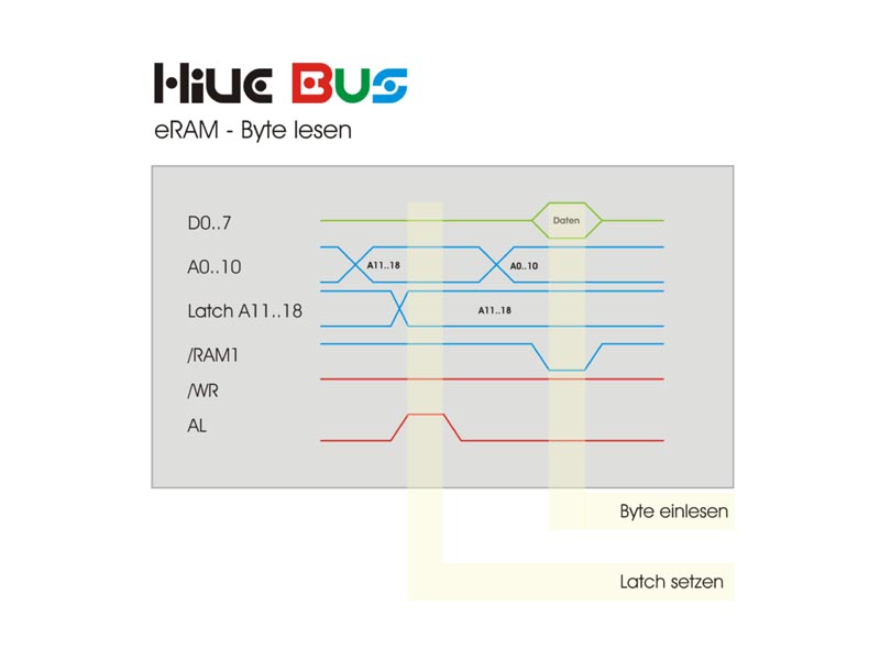 - eRAM – Regnatix verfügt über eine direkte Möglichkeit zwei externe Rambänke von je 512 x 8 Bit anzusteuern. Insgesamt stehen dem Hive also 1 MB RAM als zusätzlicher Speicher zur Verfügung. Die aktuell eingesetzten Speicher sind statische RAM’s und besitzen eine Zugriffszeit von 55 ns. Da wir im Hive einen 8Bit-Bus haben sind physisch natürlich auch nur Byte-Zugriffe möglich. Wie hoch die ganz konkrete Zugriffsgeschwindigkeit liegt, hängt extrem von der konkreten softwaretechnischen Realisierung ab.