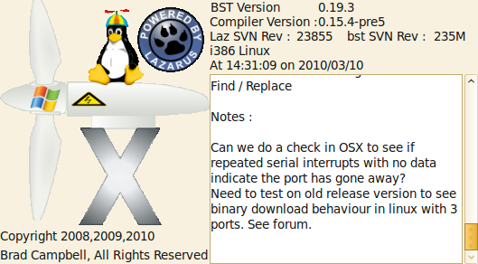 Aber mal schön langsam: Am Anfang war das Propeller-Tool von Parallax. Stabil, schnell und mit vielen nützlichen Funktionen. Aber was tun, wenn man dem wiederkehrenden Bastelwahn nachgibt und XP von den Platten verbannt um Linux (Ubuntu) zu installieren? Ja klar, es gab da doch dieses Tool für alle Plattformen von Brad. Den letzten Versuch (ein Jahr vorher 😉 hatte ich abgebrochen, da das Tool doch noch etwas langsam war. Doch die neue Version überrascht, wie auch jedes Jahr die Fortschritte von Ubuntu überraschen. Continue reading ‘Brad’s Spin Tool’ »
