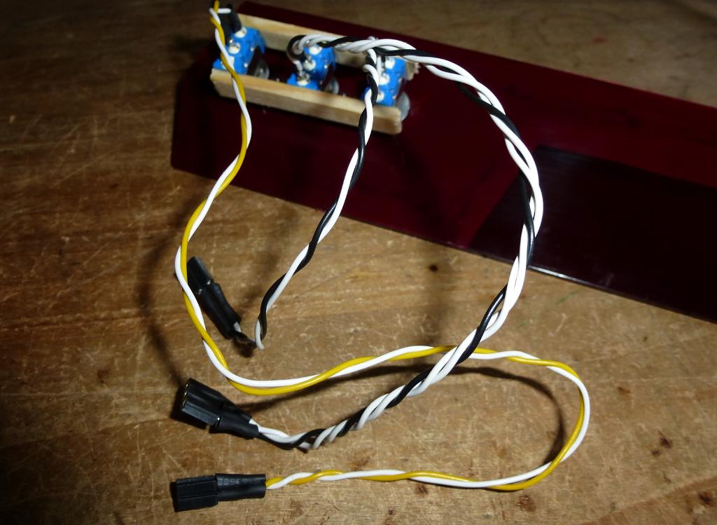 Zur Konstruktion der Schalter: die Schalter hab ich auf der Rückseite der Frontplatte mit Holzstäben und Zweikomponentenkleber verklebt, um ein Losdrehen der Schalter zu verhindern. Vor dem Einbau der Schalter hab ich an deren Kontakten Drähte angelötet. Beim Ein/Aus-Schalter hab ich normalen Klingeldraht verwendet, bei RESET und dem Boot-Selektor lediglich dünne Kupferlitze. Dann hab ich über die Drähte je ca. 1cm Schrumpfschlauch geschoben, wie man ihn auf dem Baumarkt bekommt (Foto), und die Drahtenden jeweils an einer Zweier- bzw. Dreiergruppe Stecker angelötet (Reichelt Bauteil 1X20G7 2,54). Das Stück Schrumpfschlauch hab ich über die Lötstelle geschoben, kurz den Lötkolbenschaft drangehalten damit sich der Schlauch zusammenzieht. Die Drähte hab ich dann noch verdrillt.