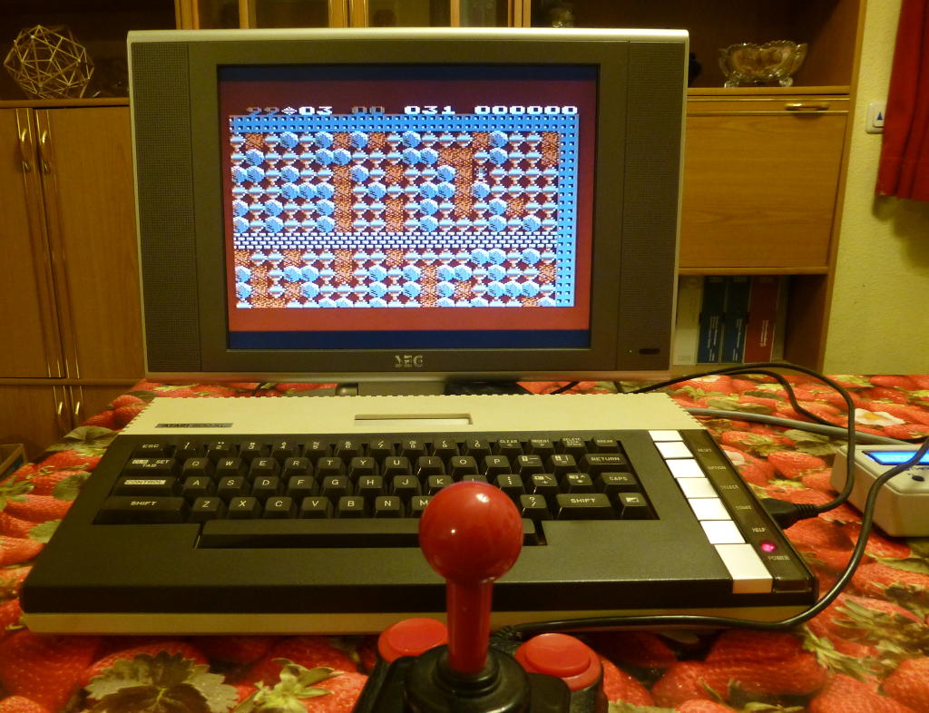 Heute hab ich dann mal nen Competition Pro angeflanscht und DAS Spiel aus den Internet gesaugt: Boulder Dash! Sehr weit hab ich's allerdings noch nicht geschafft...