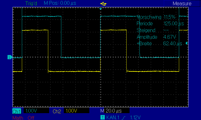Beide Kanäle benutzen zwei Ausgäne einmal normal einmal Invertiert.