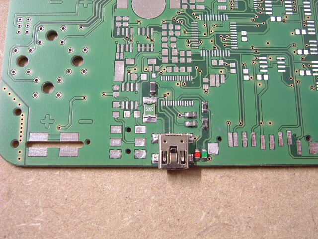 7. Optische Kontrolle der Lötungen ob kein Kurzschluß vorhanden ist, am besten mit einer Juwelier-Lupe. Danach eine Kontrolle der Anschlüsse der USB-Buchse mit einem Multimeter (Einstellung Widerstandsmessung) ob keine Kurzschlüsse vorhanden sind.