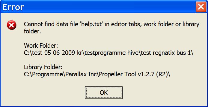 Wie die meldung schon sagt fehlt die help.txt in einen von den beiden Verzeichnissen. ich Tippe mal auf das obere.