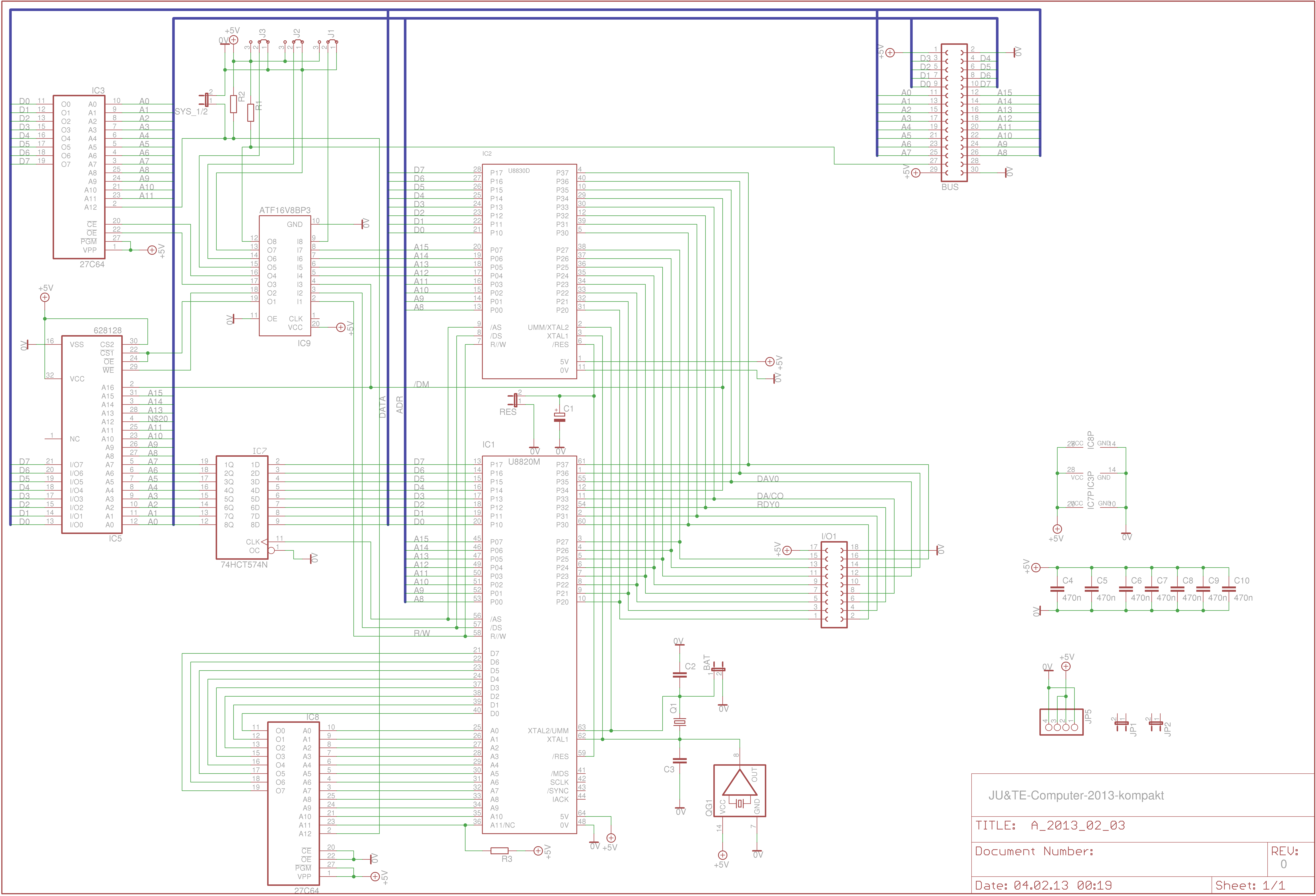 Das Busregister DL540 auch gleich noch als programmierbare Logik realisiert in ner CPLD, ein Speichersteuerungsregister da noch mit rein, das nach jedem Reset Speicherbank 0 setzt und somit ROM(Flash) ab Adresse 0 zur Verfügung stellt, ansonsten aber vom Z8 beschrieben werden kann, somit Bankswitching möglich macht...dann reicht nur irgendwann die Gal nicht mehr.