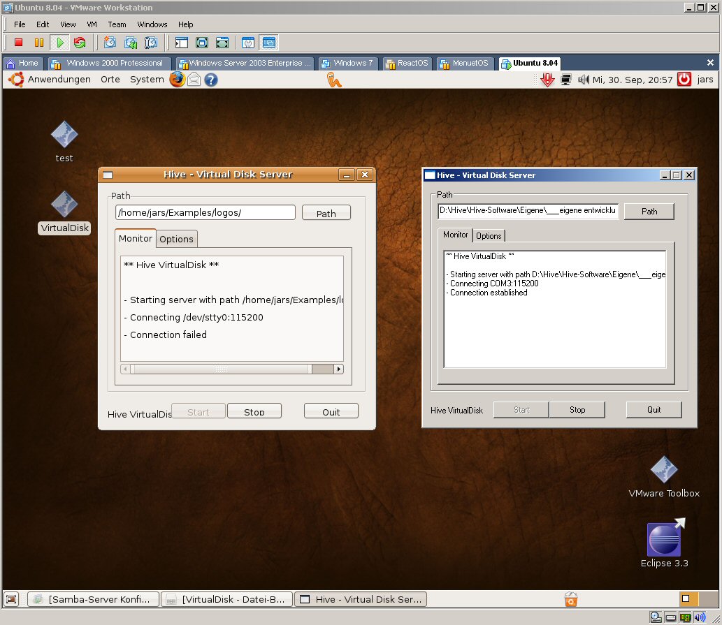 Angehängt ein Screenshot (die Windowsanwendung habe ich einfach über das VMWare-Fenster drübergelegt).