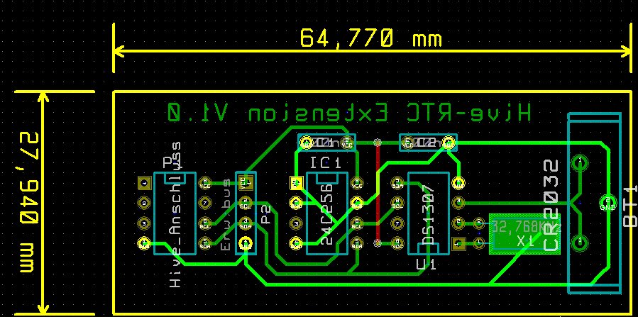 Sowas hatte ich auch im Auge. Nur muß man hier aufpassen wenn man eine Erweiterungsplatine am Bus anschließt und diese parallel mit Abstandshaltern (siehe die vorgegebenen Bohrungen) montiert. Nimmt man in der Hive-Platine die vorgesehene Stiftleiste für den Bus und an der Erweiterungsplatine die normale dazugehörige Buchsenleiste zum einlöten hat man ca. 8-10 mm Abstand zwischen den Platinen.