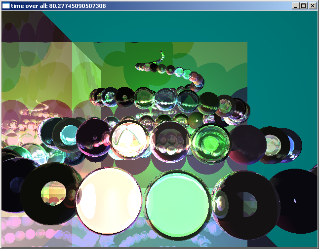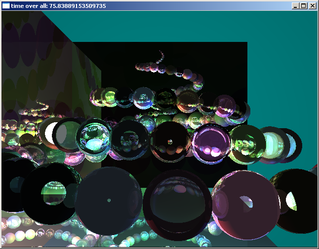 Wie man sieht erzeugt "test8.exe" immer andere Bilder da ich für Eigenschaften der Lichtquellen und des Kugelmaterials zum Testen Zufallszahlen genommen habe.