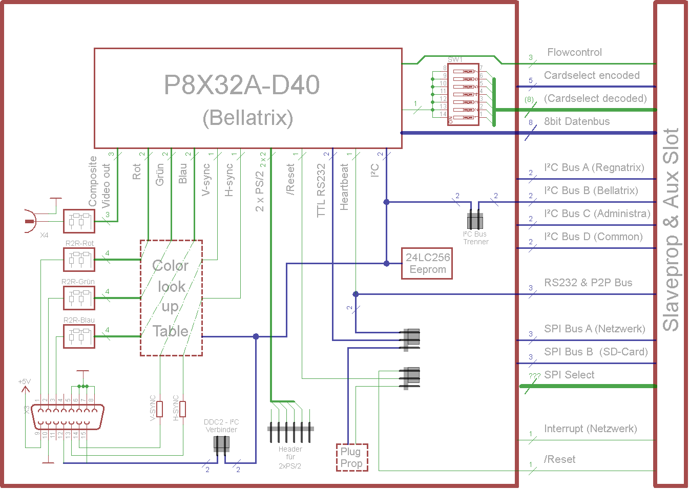 Es geht sogar soweit, das die Slaveprops am 8bit-IO-Bus (nach Freigabe durch Regnatrix) eigenständig auf den Speicher zugreifen können. Sozusagen ein DMA-Zugriff.