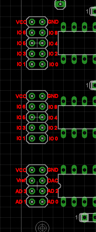 - Liegt 3,3V auch an I/O-Pinheadern? (Key gegen Verpolung?) Vielleicht könnte man zwischen die drei I/O-Blöcke auf jeder Seite noch einen Block mit der Versorgungsspannung setzen. Mit einem freien Raster hätte man auch einen Key als Verdreh/Verpolschutz.
