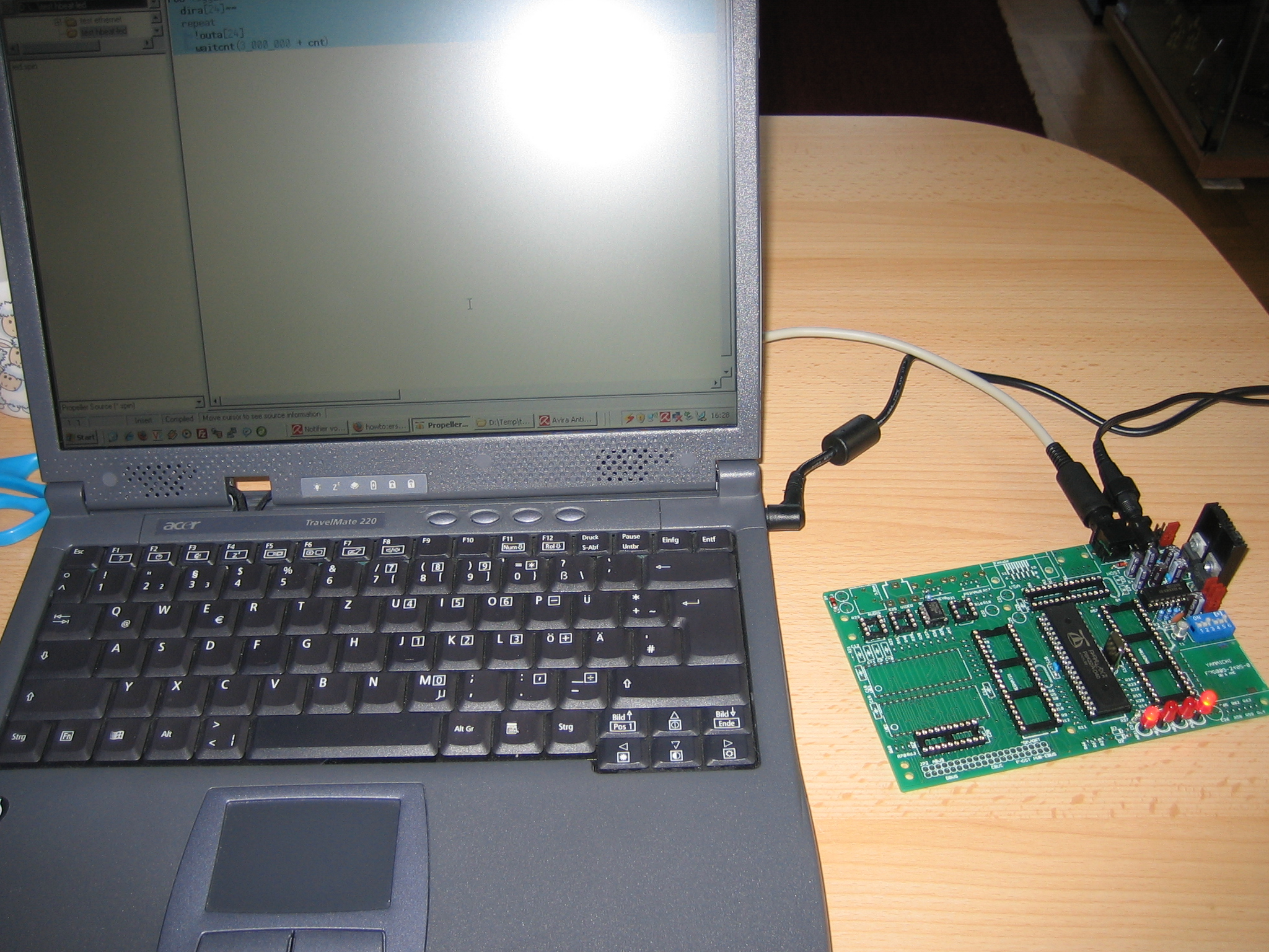 So jetzt konnte ich die VGA Schnittstelle testen: Seltsamer Weise hat nur das Programm "VGA graphics DEMO.spin" funktioniert. Bei den anderen beiden hab ich nix gesehen. Aber ich vermute mal, dass mein 26Zoll Monito das andere Signal evtl. nicht mehr darstellen kann?