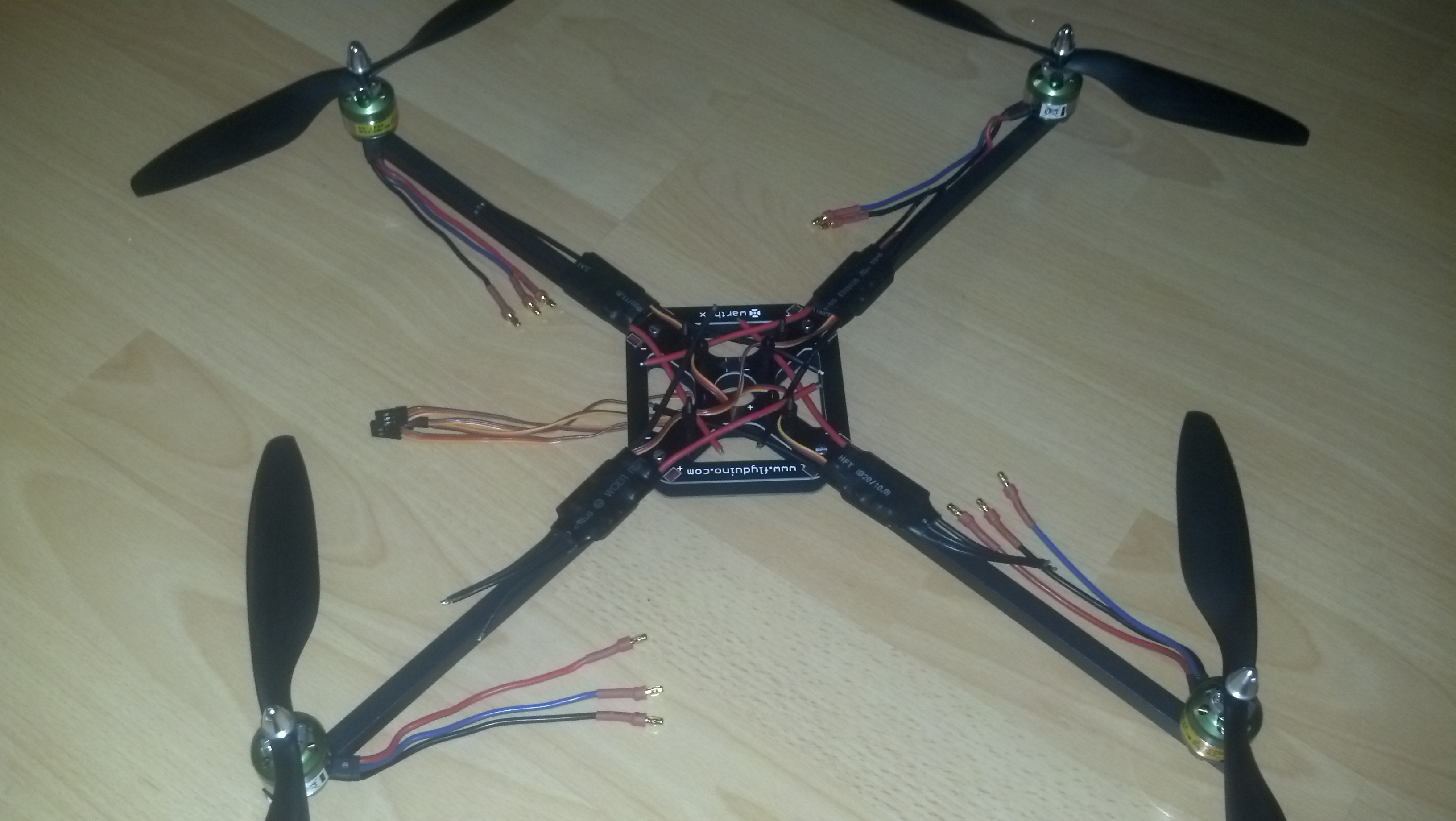 Eine stabilisierung währe mit Achsen zur Modellmitte geneigt möglich wenn sich der Schwerpunkt des Modells ca. 0.5 fachen der Auslegerlänge unterhalb des models befände.