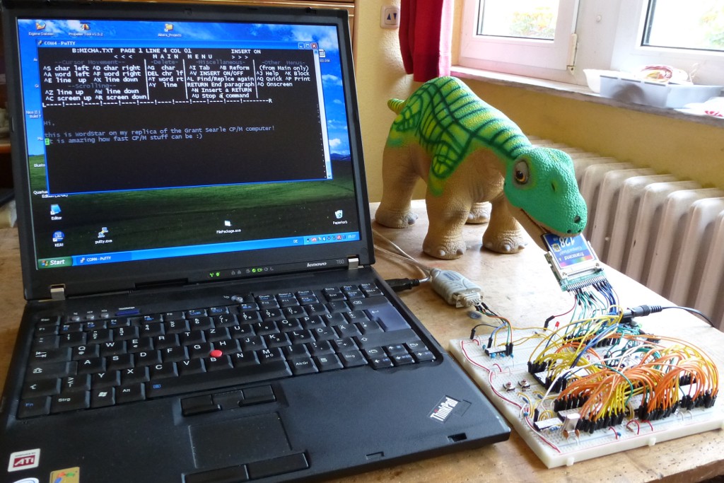 Der Grant-Searle Computer läuft mit 7,2 MHz - das ist für CP/M geradezu sensationell. Ich hab heute mit meinem PC1715 verglichen - reine Rechenprogramme die komplett im Hauptspeicher laufen sind um ungefähr den Faktor 3 schneller, was auch Sinn macht. Bildschirm-Ausgaben laufen um ungefähr den Faktor 10 schneller. Macht auch Sinn bei 115200 Baud gegenüber 9600 Baud.