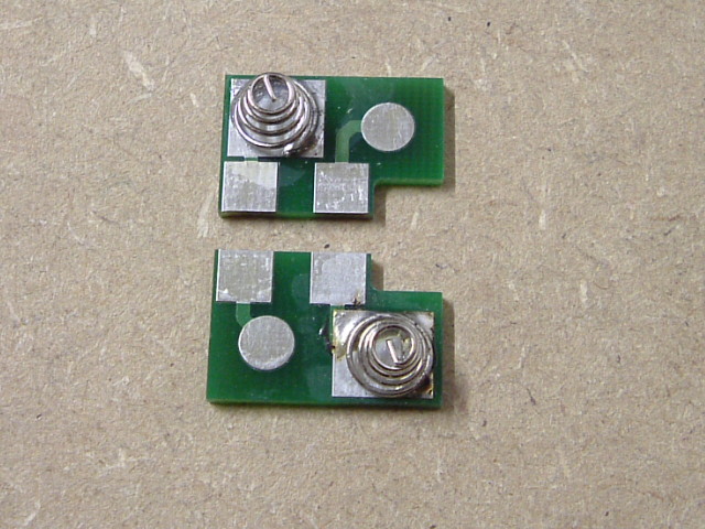 1. Als einfachste Lösung habe ich Spiralfedern als Kontakte für die Minus-Pole vorgesehen. Die hier verwendeten stammen aus einem defekten CD-Player. Beide Federn mußten etwas gekürzt werden.