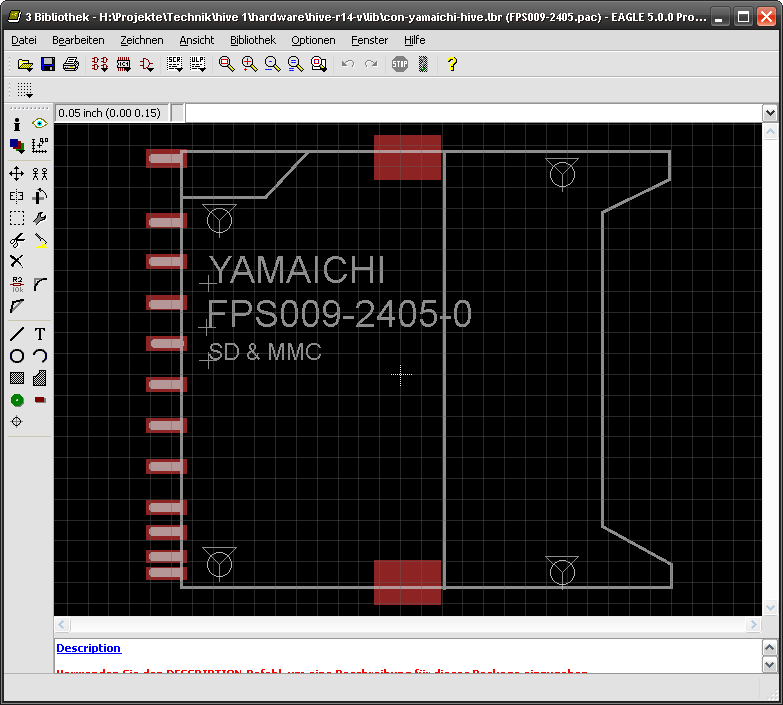 welche Abmessungen bzw. Bohrungen sollte man für den Entwurf eines SD-Slots vorsehen, welche Fabrikate habt ihr berücksichtigt? Ich hab mir irgendwann mal einen größeren Posten der Attachmate SD-Slots bei Pollin bestellt, die passen allerdings nicht zum Hive 14v Board. Aber die Idee, verschiedene Bohrungen für marktübliche Slots vorzusehen find ich gut. Leider hab ich kein Eagle, so dass ich nicht in den 14v Entwurf reinschauen kann.